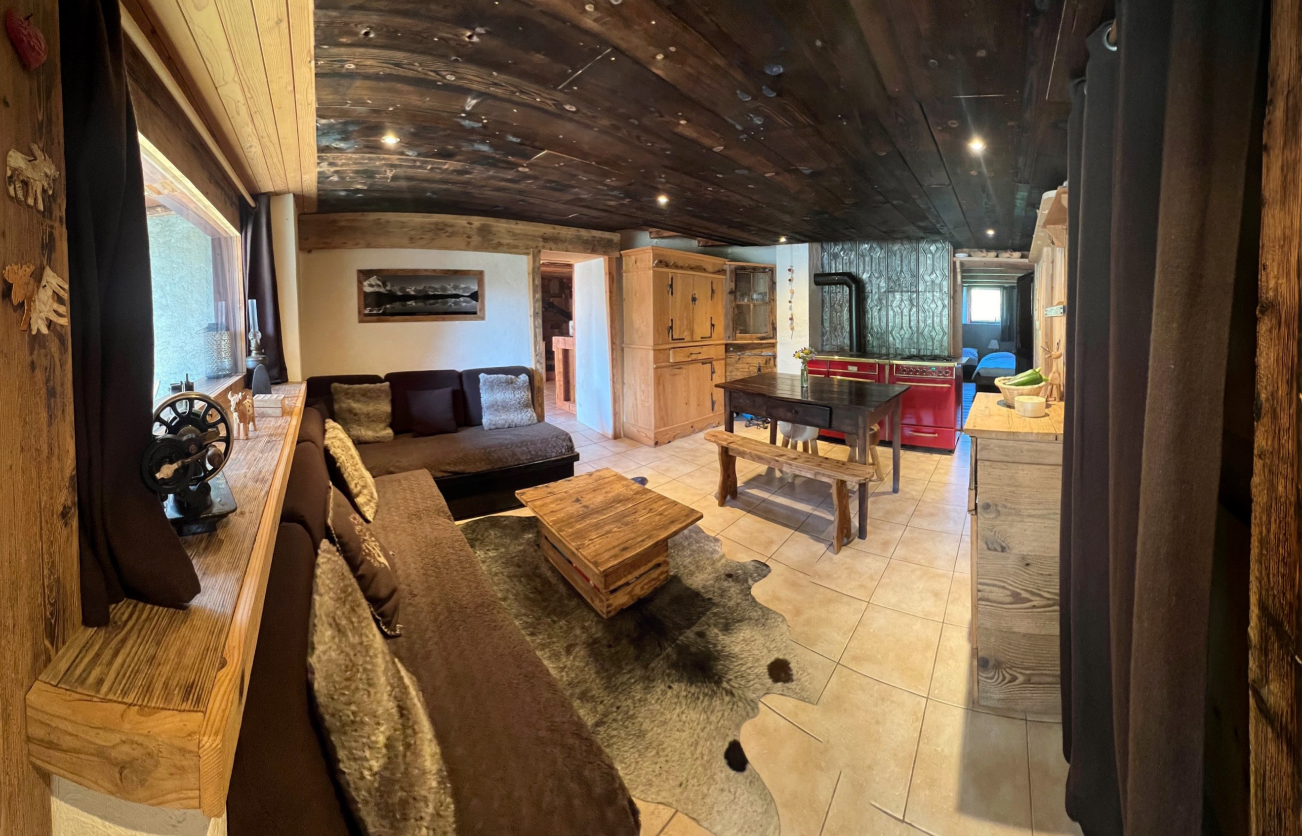 Authentique chalet d’alpage datant de 1873, cette bâtisse pleine de charme offre une superficie totale de 350 m² et se divise en deux appartements.